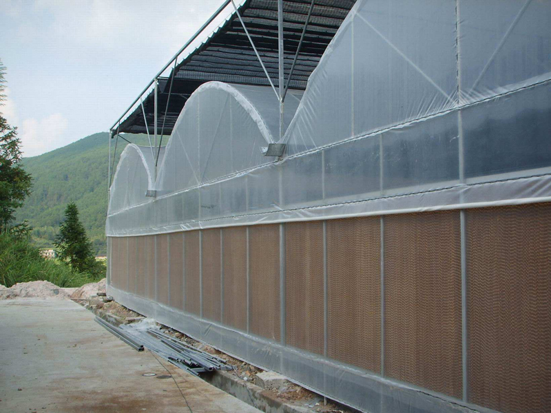 該系統具有降溫效果好、操作簡單等特點,通過濕潤凈化的空氣更有利于室內作物的生長,若配合遮陽系統綜合使用,降溫效果更為顯著??紤]冬季溫室的保溫,應在濕簾墻外側加裝一層保護膜或齒條外翻保護窗。