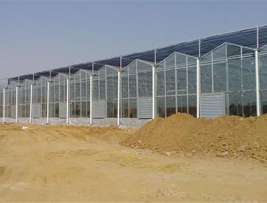 文絡(luò)溫室的骨架采用鋼架和鋁合金構(gòu)成,透明覆蓋材料為4mm厚平板玻璃。溫室屋頂形狀和類型主要有多脊連棟型和單脊連棟型兩種。